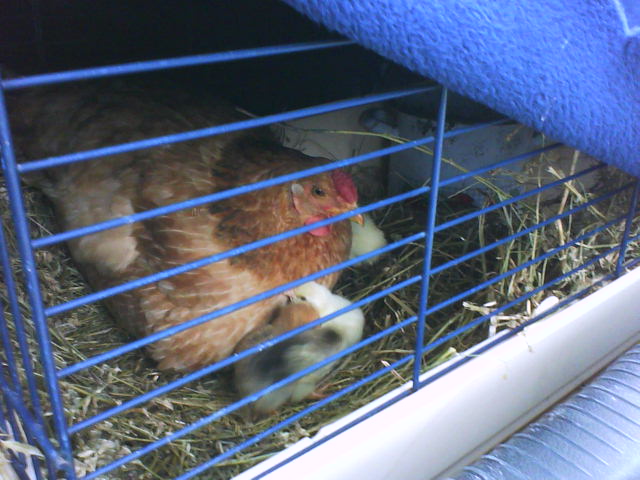 abbiamo finito ora di sistemarli......uno la chioccia.....l'ha sotto un ala......mamma mia