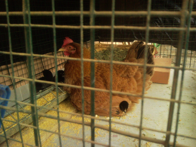 Ecco quà la mia nanetta rossa che ha covato le uova del mio livorno nero.