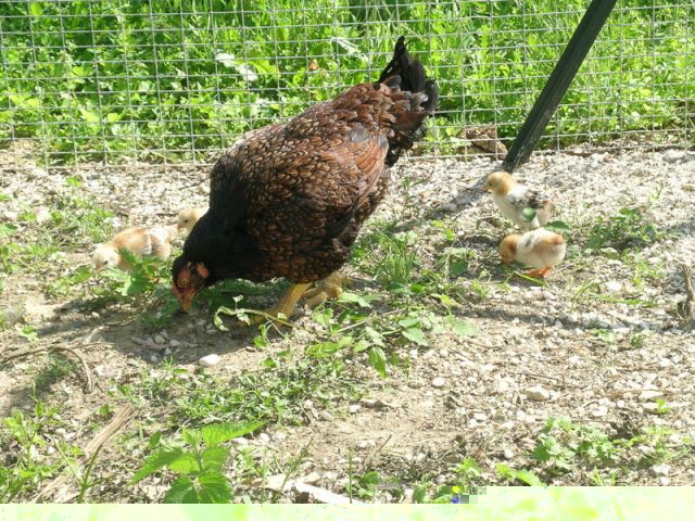 Proprio oggi un vecchietto che abita vicino casa mia mi diceva che sarebbe stata l'ora di far uscire i pulcini e la chioccia dal gabbiotto per scorrazzare nel recinto (separato comunque dal resto delle galline)...ma io aspetterò sicuramente che siano un pò più grandicelli (ora hanno 11 giorni) ... anche perchè se trovassi un pulcino accoppato o ferito mi dispiacerebbe molto....