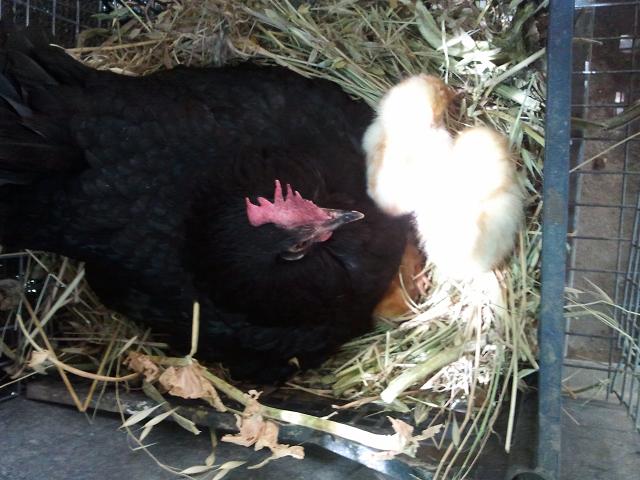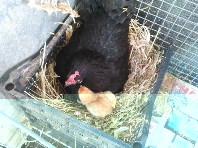 E comunque anche dopo la schiusa hanno continuato insieme a tirar su i quattro pulcini, solo che la Ancona a un certo punto (dopo una decina di giorni) è ri - volata al pollaio e a tutti i piccoli ha continuato a badare solo la Livorno per quasi due mesi.
