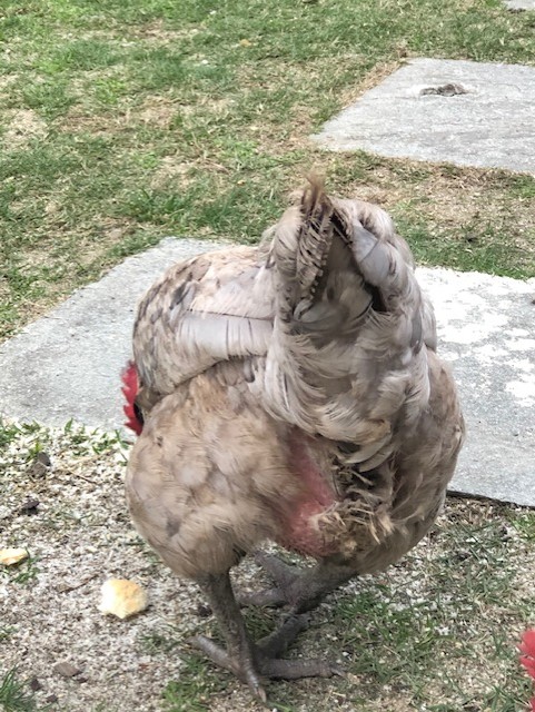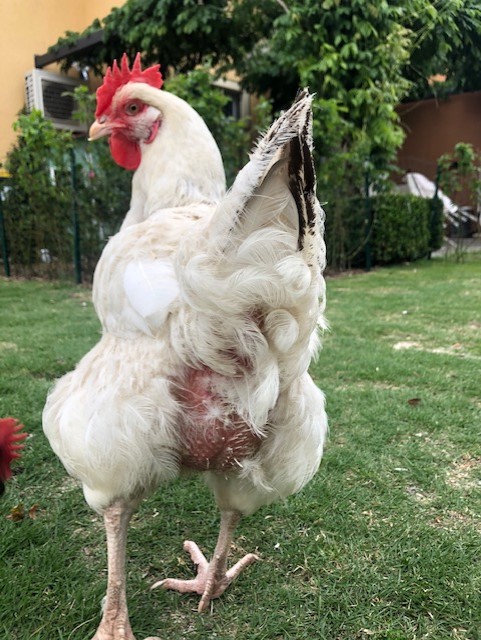 E' passato del tempo da quando lo scrissi e da allora la gallina non è migliorata, anzi, ha le piume che paiono rovinate , e rade in alcuni punti delle ali.