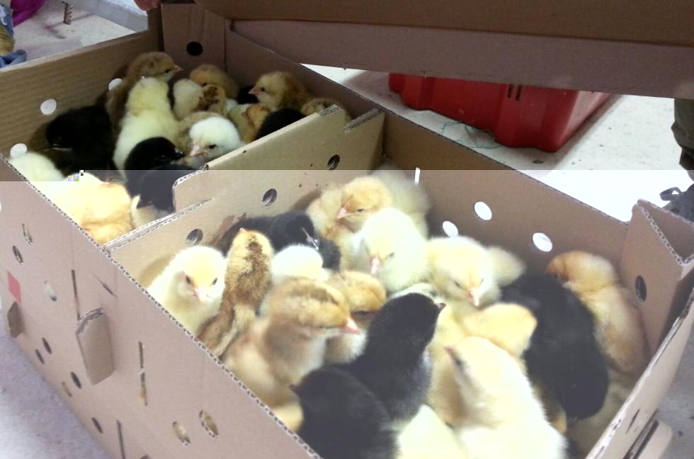 questi sono i pulcini come si presentavano al consorzio, a detta del titolare venivano tutti dallo stesso allevamento ed erano tutte femmine, di diversi colori bianco marrone e neri, quest ultimi sono poi diventati le mie attuali galline,