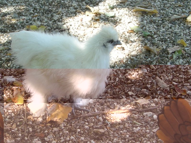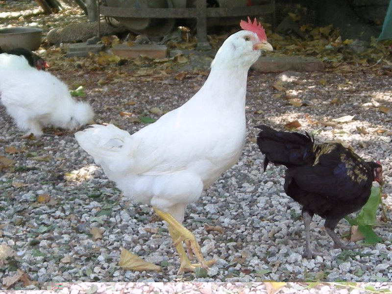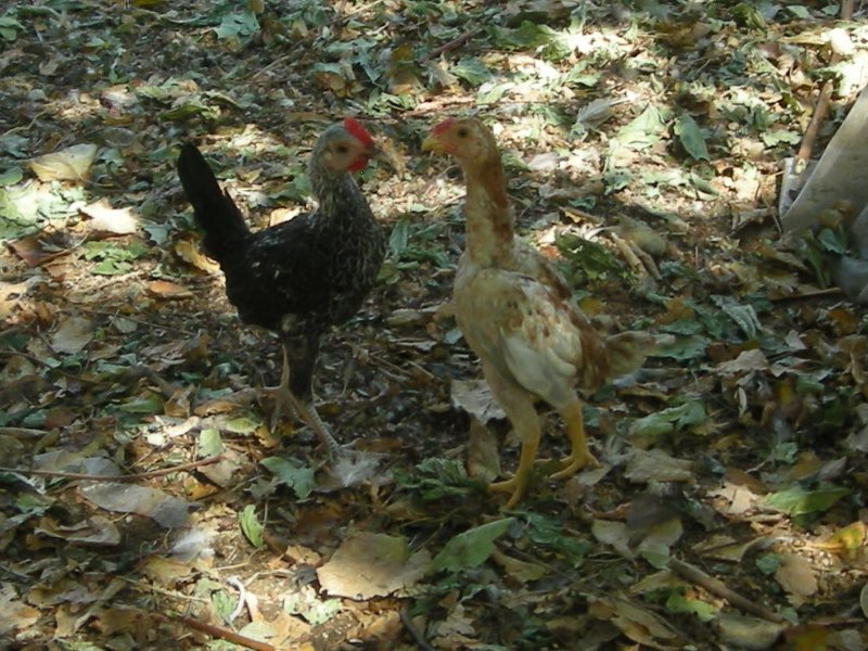 Quello nella seconda foto è un galletto di cocincina nana nera, mentre quello scuro nell'ultima foto (assieme alla boffa) è un galletto ibrido