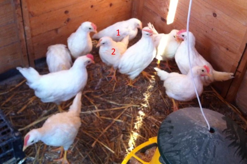 Secondo voi questi pulcini sono tutti maschi? hanno circa 40 giorni e vorrei cercare di riconoscere il sesso, i numeri 1 e 2 hanno una piccola cresta a differenza degli altri, saranno due femmine? mi hanno detto di guardare la coda, ma hanno tutti la coda "alzata" e una cresta grandissima già da piccoli..