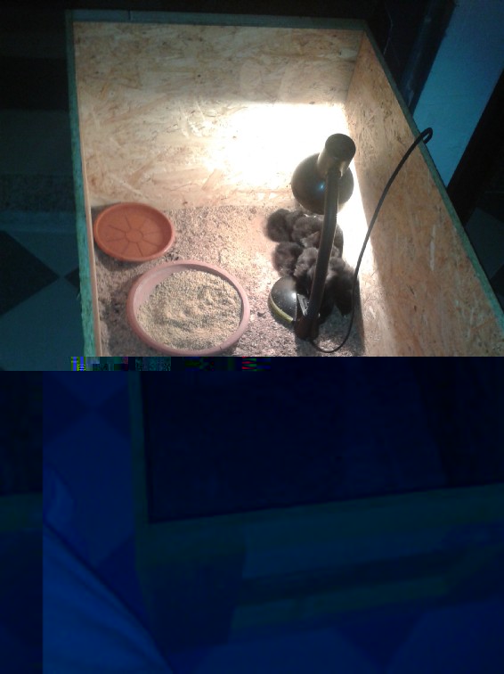 Finalmente sono riuscito a fare due foto dei miei primi pulcininati dalla real 12 automatica...su 12 uova 11 nati , uno non fecondo...sono contentissimo. Una volta ben ascutti li ho messi in questo scatolone in legno, fondo in segatura e con una lampada ad incadescenza, puo andare bene ?