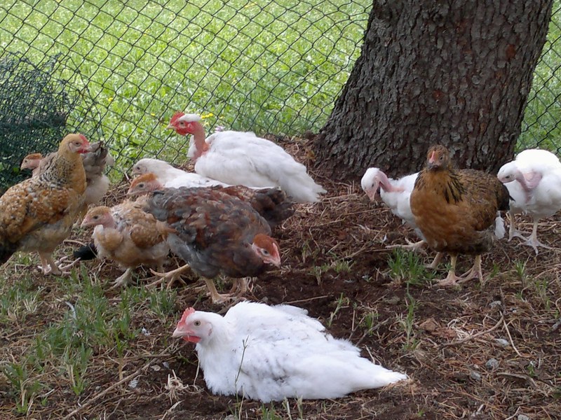 Un gruppo dei 19 nati real49 del 18 aprile, notare la bellezza del polletto bianco collo nudo in fondo e della gallinellona in primo piano