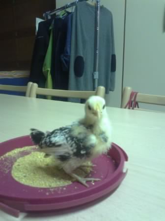 ecco l'unico sopravvissuto di una incubatrice starata, ormai ha 20gg, è un po' sottosviluppato ma non ci si può aspettare troppo da un pulcino che è sopravvissuto a 21gg a 42°C!!! dovrebbe essere un amburgo argento pagliettato nero. Che dite?
