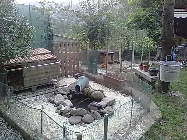 come prima cosa vi mostro l'ambiente dove tengo i miei due germani, (i preferiti), e sullo sfondo il recinto dove stanno le tre anatre..