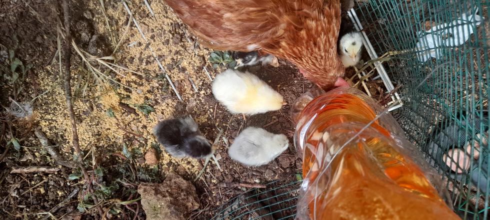 Unico consiglio per tutti quelli che iniziano: se utilizzate una mangiatoia piccola, mettetene due. Perché spesso i pulcini entrano nella mangiatoia, e bloccano l'accesso alla chioccia, o viceversa (la testa della gallina entra e i pulcini non riescono a nutrirsi bene.