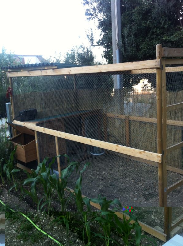 Bello il pollaio, fai attenzione che il legno, specialmente in estate, potrebbe darti problemi di parassiti / acari, delle galline, quindi tienilo pulito e disinfettato per non avere problemi. Come mangime anche io do gli scarti dell'orto, ogni tanto gli faccio anche un pò di erbe raccolte varie, come mangime preferisco dargli del misto granaglie, a volte orzo, mais spezzato....