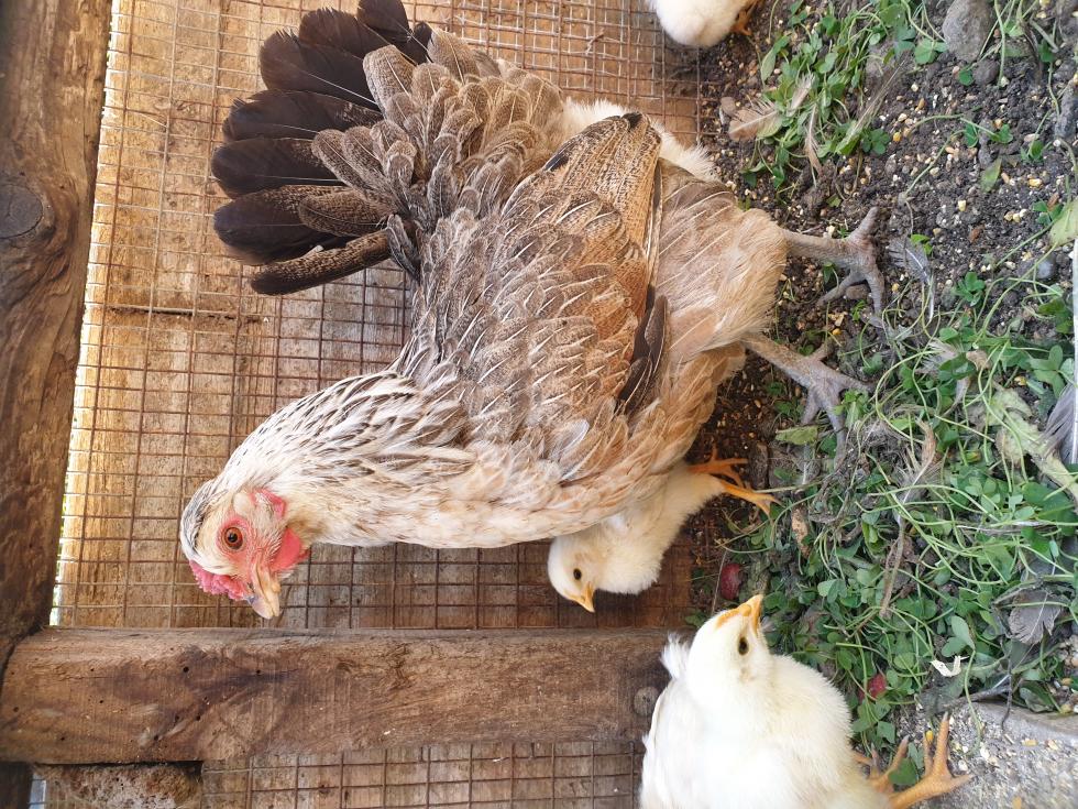 Buongiorno a tutti, sono Francesco e ho 30 anni, mi sono presentato nell'apposita sezione. :) Ho ripreso da alcuni anni ad allevare galline, così come facevano i miei nonni; ho iniziato con delle comuni Isa, anche perchè le tengo solo per la produzione di uova. Ho preso successivamente una Livorno commerciale, mi sono state regalate due galline ibride nate da chioccia e al mercato ho comprato una coppia di ibridi, gallo e gallina. Quest'ultima l'anno scorso ha covato per la prima volta e sono nati due galletti (madre Livorno) e una gallinella ibrida, figlia della chioccia. Quest'anno ha covato nuovamente e ne sono nati cinque su nove uova (tutte fertili, ma per errore mio sono morti dentro al guscio, in quanto ho separato la galline dopo tre o quattro giorni, e nel frattempo le altre galline avevano fatto le uova nel nido, cosicchè nati i primi cinque la gallinella si è alzata dopo due giorni, non portando a termine la cova delle altre), tra i quali ci sono sicuramente due galletti ibridi (sempre madre Livorno) e quelle che sembrano essere tre future gallinelle. Sono un neofita per quanto riguarda razze e tipologie, e vorrei avere alcuni pareri sulla chioccia; fa uova medio piccole di colore chiaro. Posto che sono consapevole del fatto che si tratti di ibrido, mi è sembrato di vedere su internet alcune razze che le assomigliano parecchio, ma differisce poi da esse per piccoli particolari. ;) Allego un pò di foto, anche dei pulcini nati lo scorso anno e quest'anno.