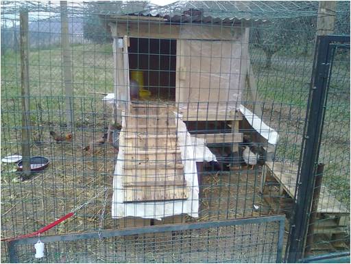 Ciao a tutti, complimenti per il forum davvero interessante....ho potuto apprendere un sacco di cose nuove!!! Vi presento ora il mio pollaio e gli esemplari presenti. Il pollaio si trova in aperta campagna marchigiana alle pendici del Monte Conero, è di circa 18 metri quadri, ho interrato la rete e l’ho messa anche sopra. Come riparo ho costruito un gabbione di legno rialzato di 1,5x1,5x1,5 m usando tavole di bancali. All'interno ho messo 2 posatoi di bambu rialzati (L'ho fatto dopo aver scoperto il forum) e come lettiera uso la paglia. Attualmente stò chiudendo anche la parte sottostante cosi da ricavare 1 spazio per la paglia e due per le cove ed eventuali posti dove isolare poi i pulcini. sotto le scale ho anche messo un piccolo gabbioncino con 2 cove. Per marzo amplierò anche la corte di altri 100m2. Gli animali che ho introdotto sono tutti esemplari nani giovani trovati da contadini delle vicinanze. La prima coppia (foto 2) l'ho presa da una mia amica, poi ho inserito un'altra gallinella (foto 3) che in circa 3-4 giorni si è integrata al gruppo perfettamente. Infine ho inserito la terza gallinella (foto 4 bianca), quest'ultima ha avuto qualche problema ad inserirsi causa forse la giovane età. In pratica veniva continuamente attaccata dal galletto e dopo due giorni l’ho trovata la mattina che non riusciva più ad aprire gli occhi che erano pieni di pus e quant’altro. Dopo una settimana di lavaggi con camomilla e lacrime artificiali l’infezione è sparita anche se un occhio ahimè è rimasto permanentemente un po rovinato, comunque ci vede e si alimenta. Oramai sono tre settimane che l’ho inserita ed è stata accettata dalle altre anche se rimane un po’ in disparte ed evita contatti troppo diretti; spero che impari presto a tenere testa in modo appropriato alle altre gallinelle…sono molto fiducioso in quanto si sta riprendendo velocemente e non vedo l'ora di ammirarla in tutto il suo splendore!!! Ciao Niki