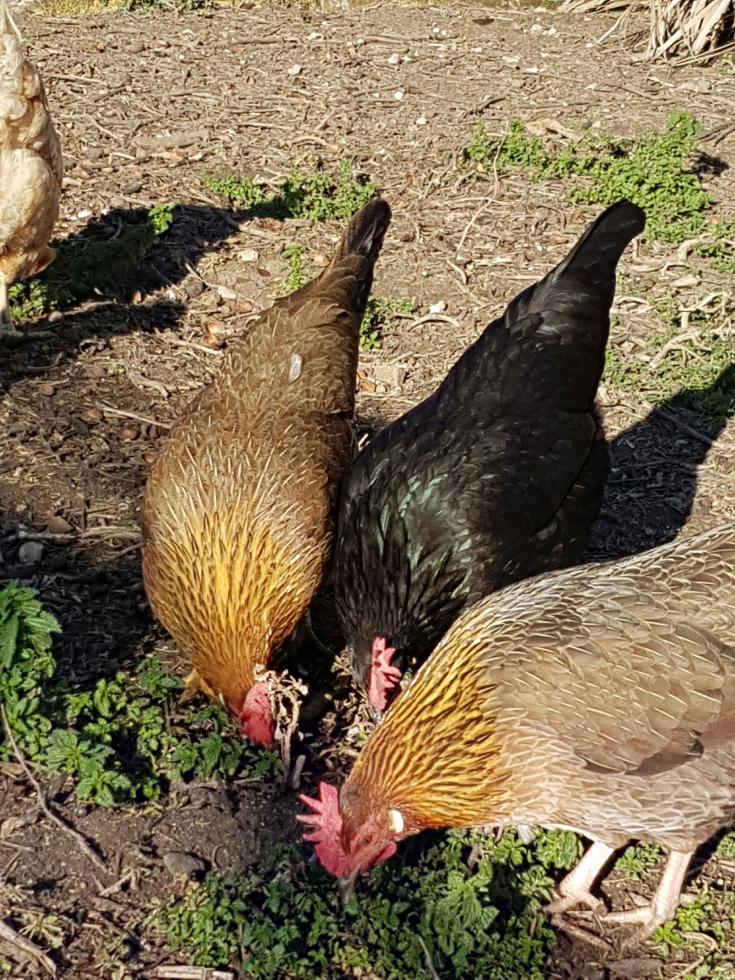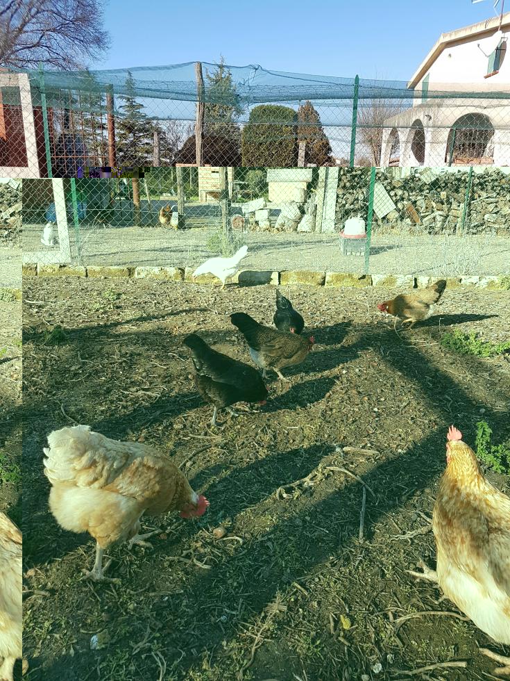 Ora passiamo agli adulti..perdonate se c'è qualche gallina spennacchiata ma stanno ancora terminando una lunga muta..c'è da dire che però nn hanno mai smesso completamente di fare uova..anche il gallo nn è ancora al 100%..