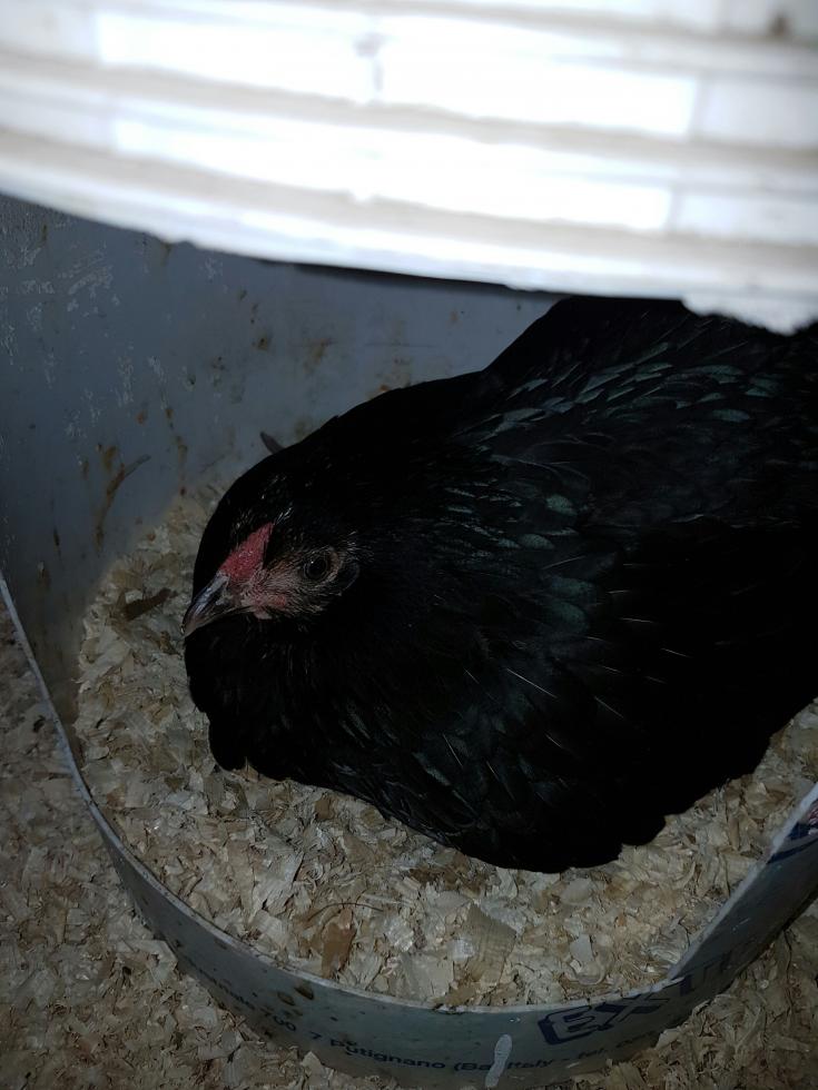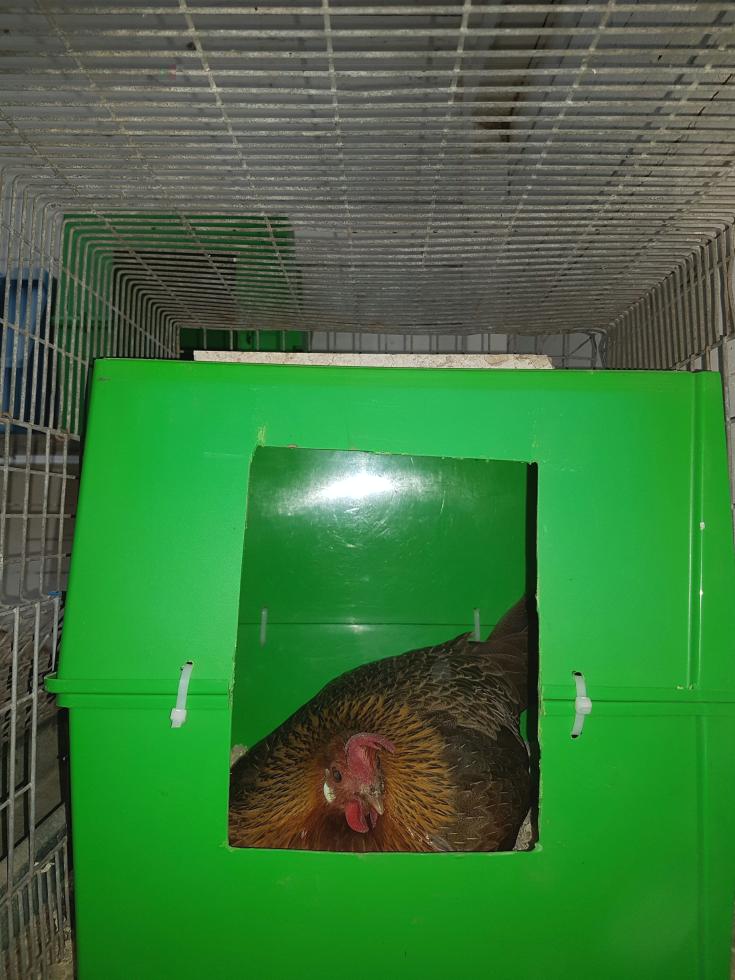 Oggi l'ho spostata nella gabbia all'interno del pollaio..mai gabbia fu più utile..