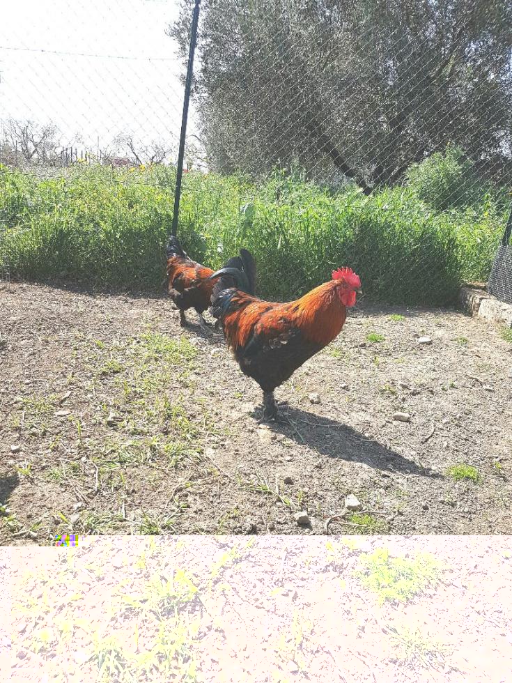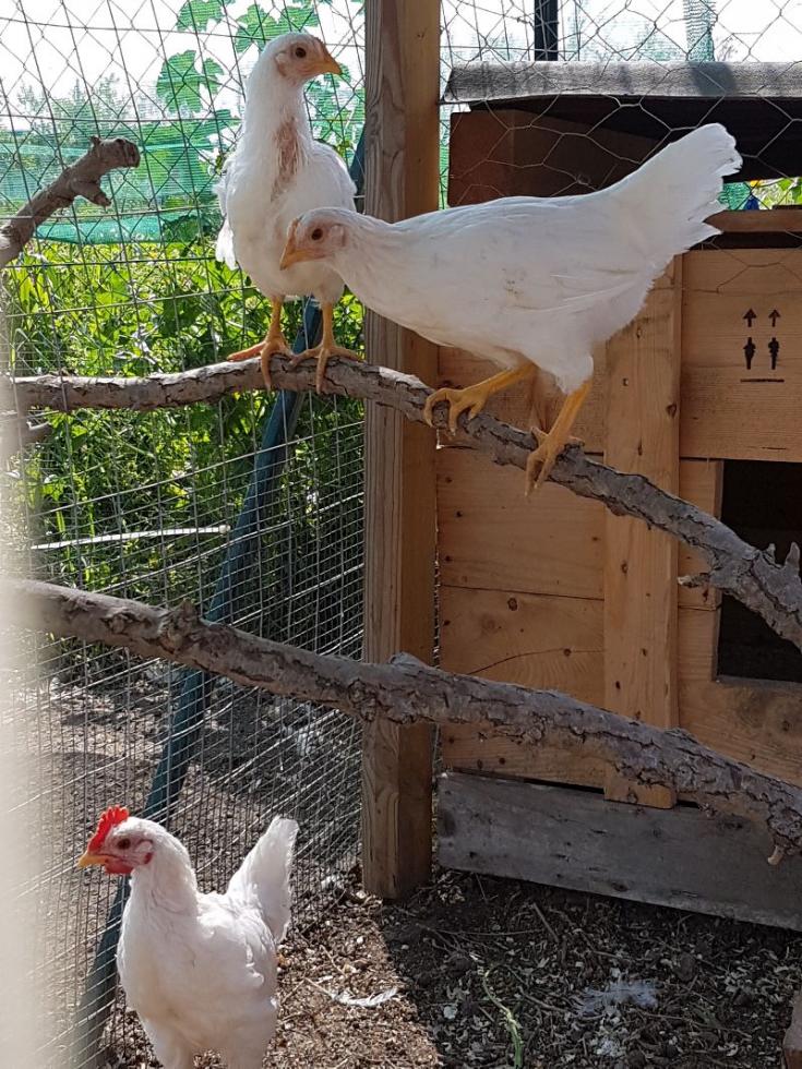Quella di profilo sulla destra è pura..l'altra a fianco é l'incrocio..nn si vede ma ha una coda molto più piccola e meno rilevata rispetto ad una Livorno e la cosa che ho notato è che sta impiumando molto lentamente rispetto ai due fratelli..infatti si nota ancora il collo un po' spoglio..