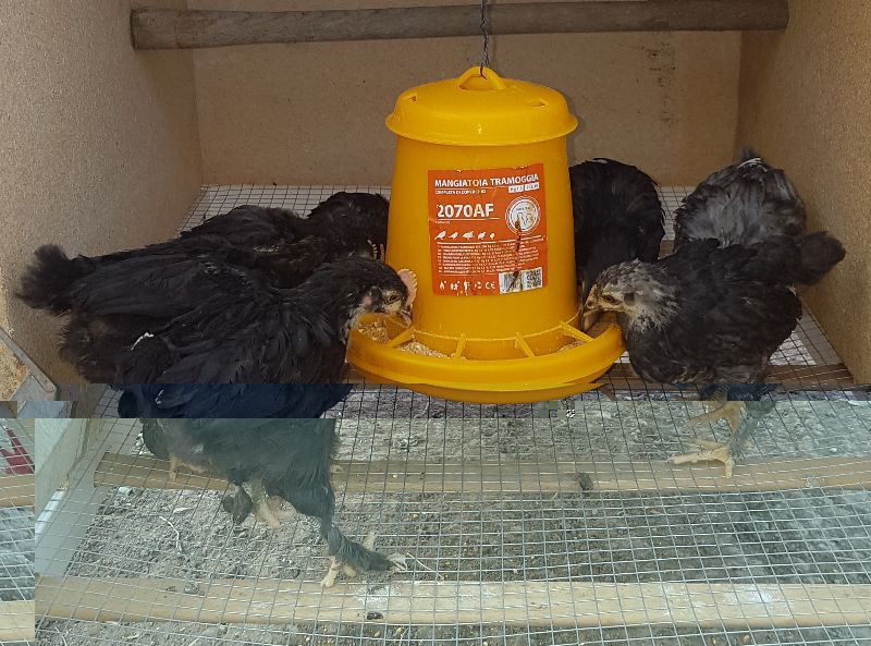 Bongio come è andata con l'ochetta..? Oggi pomeriggio ho sistemato un po' la gabbia/culla ed ho spostato all'esterno gli 8 pulcinotti dell'ultima incubata..ora hanno esattamente 36gg.. Ho fatto qualche scatto al volo..