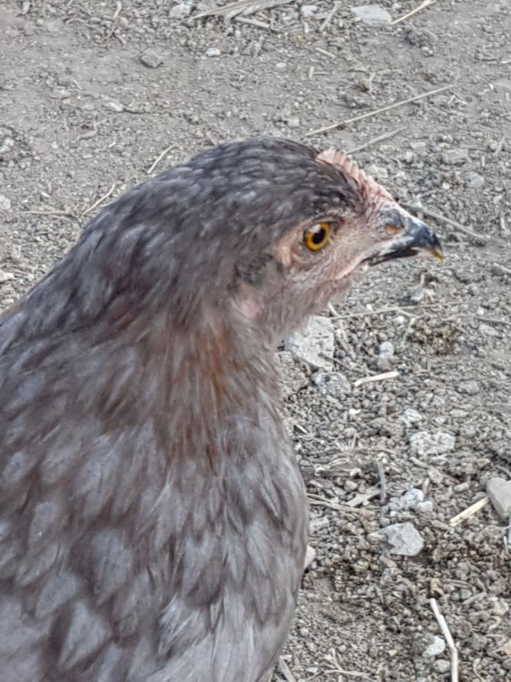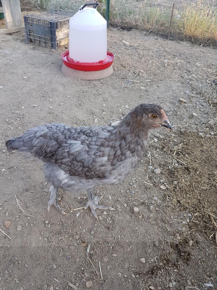 Dettaglio Marans blu..e Aracuana blu selvatico probabilmente maschio sempre di tre mesi anche se è la metà dei suoi fratelli Marans..unico suo difetto il becco un po' lungo nella parte inferiore..come se nn lo avesse mai levigato strusciandolo a terra..
