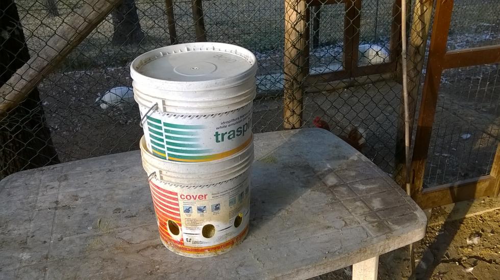 ciao Taky, alle mangiatoie che tu hai adesso , è sufficiente isolarle con un tubo del diametro uguale alla base delle tue mangiatoie, in tale tubo, dovrai fare dei fori asolati verticalmente dove i polli entrano con la testa, l'altezza del foro da terra è sui 15 cm , appena un pò più basso del gozzo, misura l' altezza della gallina, la distanza tra i fori 10/12 cm, non è che il primo tentativo sia quello giusto, io ho rovinato svariati secchi prima di arrivare alle misure giuste ( soddisfacenti )