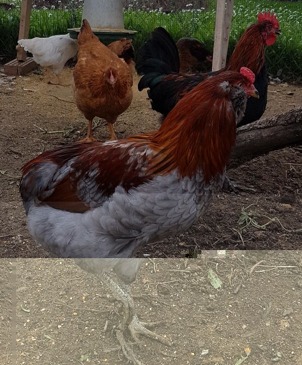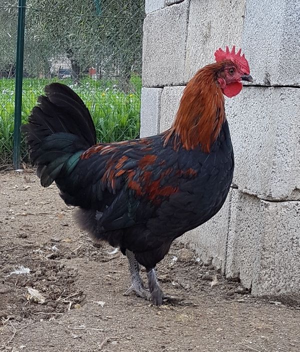 Questo è un piccolo galleto di tre mesi..piccolo per modo di dire visto che è grande quanto un Aracuana di 5 mesi e mezzo.. Cmq lui è figlio della mia prima coppia Marans quindi nn consanguineo con il gruppo dei Marans di 7 mesi.. Conto molto su di lui..noto già la coda un po' alta ma per ora ha un bel portamento una cresta meravigliosa e canta già da quando aveva 2 mesi e mezzo..