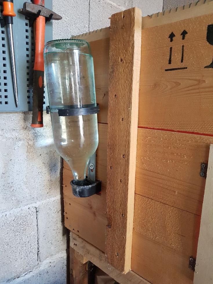 Ultima modifica alla camera calda..dovendo assentarmo per un paio di giorni ho dovuto rimediare al fatto che essendo ormai cresciuti i pulcini facevano svuotate labbeveratoio a sifone..