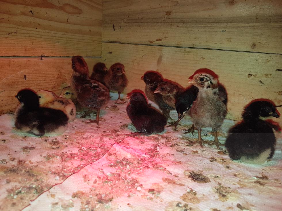 Ieri tutti i 12 nuovi nati stavano benone..anche gli ultimi due nati che avevo dovuto aiutare, il Romagnolo è bello vispo nonostante abbia il piumino un po' "secco" a causa delle membrane che si erano asciugate, mentre il Marans è bello vaporoso ma gli ho dovuto mettere le scarpine ortopediche a cui sembra essersi ben abituato..