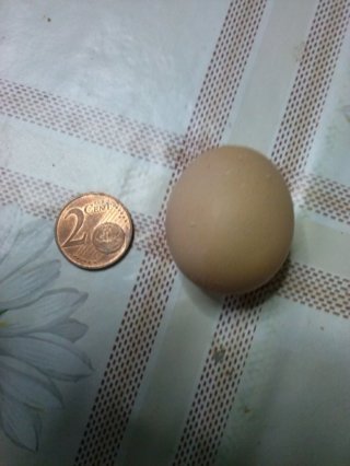 non so se il mio messaggio e adatto per qui e solo per curiosita o un piccolo pollaio tra tutto 8 galline quasi tutte nanine ccirca un anno di eta . uova 2 o 3 al giorno questo pero e strano .. come mai cosi piccolo