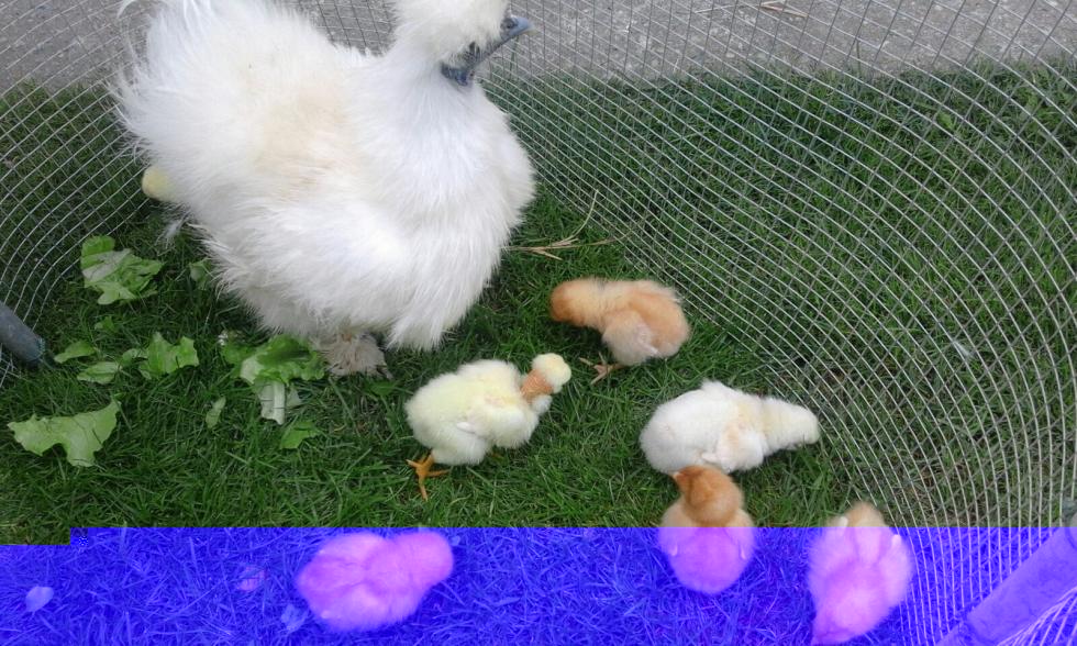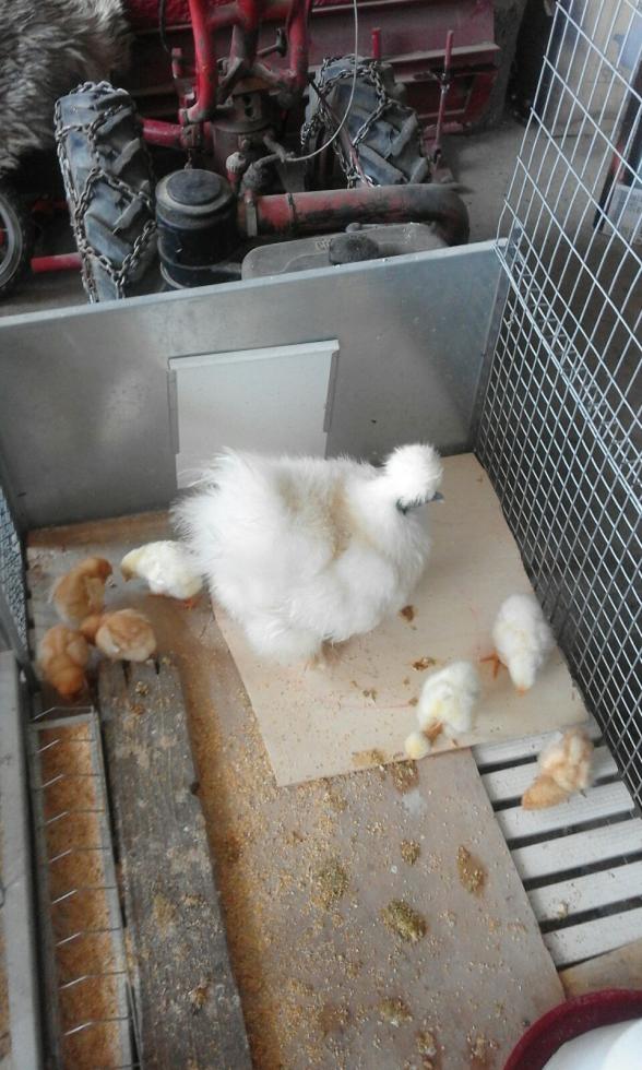 Allora, mi fa piacere che gli abbia accettati, lo dicevo che era una brava chioccia! Allora se non vuoi rischiare di fare le corse per prenderli si usa un piccolo recinto, un altro modo sarebbe realizzare un piccolo cesto con dei buchi abbastanza larghi da farci passare i pulcini ma non la chioccia questo era un metodo che usavano i nostri nonni per far si che la chioccia restesse all'interno della gabbia mentre i pulcini restavano lì intorno e non si allontanavano.