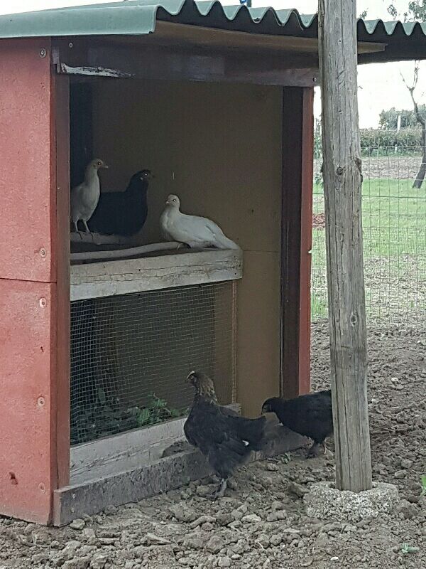 Buona sera a tutti.. Oggi pomeriggio ho trasferito i quattro pulcinotti di due mesi con la loro mamma nel recinto per l'accrescimento.. Sta volta memore dell'errore commesso con la covata precedente dove tolsi la chioccia e loro andarono a dormire sul tetto del pollaietto..ho tolto completamente il nido in cui fino ad ora avevano dormito in modo che la chioccia mostrasse loro dove dormire..e così è stato..così quando toglierò la mamma loro continueranno a dormire dentro la loro casetta al riparo dai venti e dalle pioggie..