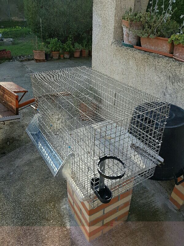 Buona sera a tutti..in questi giorni tra un travaso di mosto e l'altro mi sono costruito una gabbia partendo da una vecchia gabbia per conigli da ingrasso..e niente questo è il risultato..