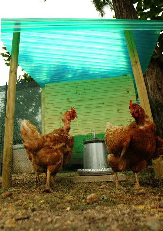 al momento uso un'orribile telo di plastica trasparente, più che altro per far si che quando piove le mie 2 pollastre non si ritrovino a razzolare nel fango, L'ombra cel'hanno sempre perchè stanno sotto un grosso albero, ma quando piove l'orribile telo s'imbarca d'acqua, insomma uno schifo :roll: