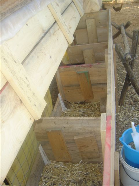 POLLAIO N.1 E' realizzato tutto in legno, con tetto in lamiera zincata coibentato con la legna.. le dimensioni sono: 4,00x2,50 mt per 2,00 di altezza. All'interno ci sono solamente i trespoli, mentre i nidi sono realizzati all'esterno, in modo da poter raccogliere le uova senza entrare nel pollaio.