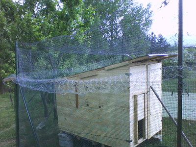 Come avrete notato abbiamo fatto la recinzione con la rete anche antifaina......poi abbiamo interrato 50cm. la rete sottoterra,un lavorone ma almeno speriamo di stare tranquilli......poi abbiamo anche coperto sopra con rete antiuccelli.....manca la scaletta....ma tranquilli ora c'è!!!!  Allegato: