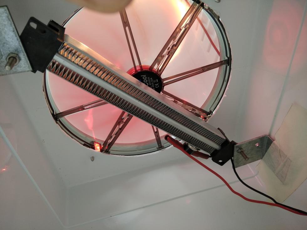 Il sistema di riscaldamento sarà con resistenza da 100w (piastra o tappetino) e ventilazione con ventole da 120 e 140mm.