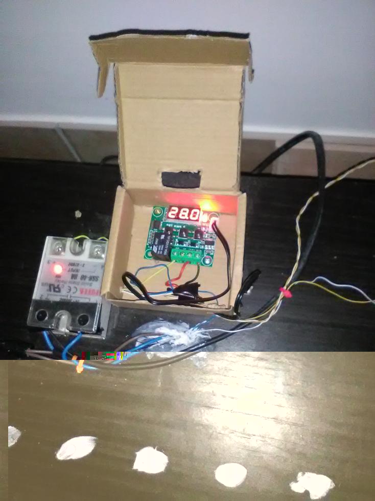 Da un mobile IK3A arrivato danneggiato che è stato ritagliato, un girauova da 56, resistori elettrici, un precicissimo termostato da 13 EUR, un relè SSR, una ventola sunon 120x120 a 220V, un infallibile igrometro meccanico, una vaschetta per l'umidità manuale dove dall'esterno posso regolarla aggiungendo o rimovendo acqua con una siringa collegata ad una cannuccia, il tutto su UPS... ho tirato su quest'animaletto, vedrò se sarà all'altezza del suo compito.