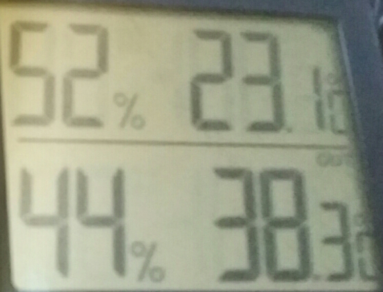 Vi allego foto del termo-igrometro ... la riga di sotto ext sono le condizioni dentro l'incubatrice.