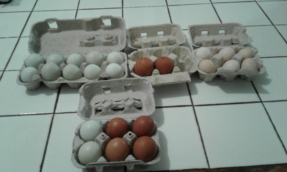 Ce l'avete fatta, alla fine mi avete irrimediabilmente contagiata con le vostre incubate, i pulcini, le prove, gli esperimenti, le foto, gli scambi, le esperienze... insomma, qualche settimana fa ho acquistato una Borotto 24 automatica (che mi sembra un'ottima macchina) e domani sera inizierò il mio primo esperimento di incubazione. Oggi ho acquistato da un allevatore non troppo distante da casa mia 12 uova di Araucana, 6 di Marans e 6 di Cocincina. Devo confessare che sono un po' perplessa circa i colori delle uova: quelle di Araucana mi sembrano un po' troppo chiare e quelle di Marans anche (guardate le foto...e considerate che le mattonelle del tavolo sono bianche, così potete comparare il colore delle uova di Araucana). Alcune uova delle mie Isa sono dello stesso colore di queste delle Marans che ho acquistato. Mah... staremo a vedere. Chi me le ha vendute le aveva già messe con la punta in giù e mi ha raccomandato di non lavarle. Su questo punto vorrei il vostro consiglio perché in effetti sono piuttosto sporche. Che senso ha sanificare l'incubatrice con l'Amuchina se poi ci metto feci portatrici di ogni sorta di infezioni? Ho provato per diverse ore l'incubatrice: funziona alla perfezione, e tiene costanti i 37,7 gradi a cui devo impostarla all'inizio. Il girauova funziona bene anche lui. Ogni 5 giorni cambierò postazione alle uova, come indicato ed eseguirò la speratura nei tempi pure indicati. Secondo voi devo acquistare l'umidificatore automatico? Mi sembra che qualcuno mi avesse detto che non era indispensabile... C'è qualcosa di particolare che pensate debba fare e volete suggerirmi? Ovviamente porterò l'incubatrice a temperatura e poi inserirò le uova. Le metto come capita? (con riferimento alle diverse specie, intendo). Riempio una vaschetta d'acqua potabile e poi ne controllo ogni giorno il livello. C'è altro, di importante, che devo fare? Ho un tale timore di sbagliare.... Grazie, come sempre, a tutti voi!