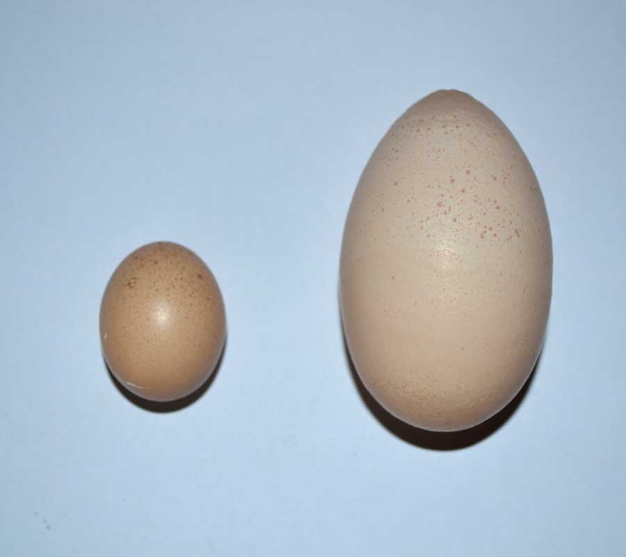 Guardate cosa mi è capitato. Ieri una delle riproduttrici Amrocks ha fatto un uovo piccolo di 17 grammi, al cui interno manca il tuorlo. Oggi invece ha fatto un uovo gigante di 93 grammi con 2 tuorli. Può succedere; la gallina ha un anno ed è al secondo ciclo di deposizione, in mezzo ai quali c'è stata la prima muta.
