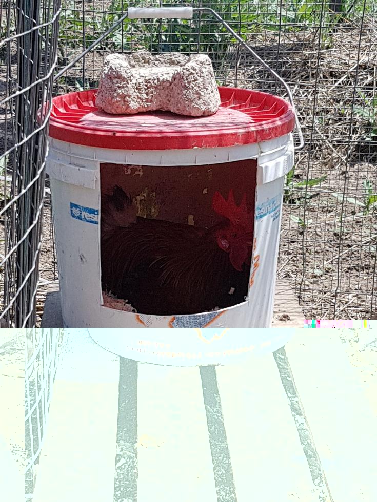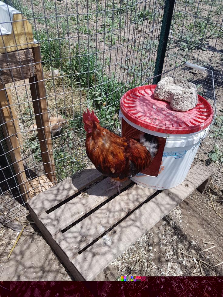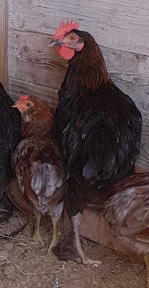 Una delle due adulte sembra stia covando e quindi l'ho isolata.. Il gallo vecchio e la gallina dai tarsi verdi (servita a immettere nuovo samgue..) sono stati regalati separatamente.. Ho creato al volo un nuovo ricovero..con il vecchio avevo l'ansia degli acari..e nel recinto ho inserito la Mugellese già chioccia con i suoi 3 pulcini 1 maschio e 2 femmine, più 3 Aracuana e una femminuccia di Mugellese e la pulcinotta portata da Maurizio insieme al gallo.. La situazione notturna era questa: la pulcinotta sul posatoio interno, i 3 Aracuana e la Mugellesina (cresciuti in camera calda) a terra nel ricovero e la chioccia con i suoi 3 piccoli e il galletto nuovo sul posatoio esterno.. Alimentati tutti a secondo periodo..tanto la chioccia nn depone e il gallo ha bisogno di energie per rimettere il piumaggio migliore..