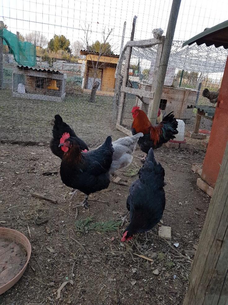 Ok quindi è il momento delle donzelle..  Le Marans dono 4..erano 5 in origine una l'ho ceduta con l'altro maschio..era una blu Ramata ma di un blu molto scuro e con una cresta molto brutta.. Le rimanenti nn sono assolutamente perfette ma tutte e 4 fanno delle belle uova scure.. Lei è la gallina che mi piace di più.. Poi una ha tarsi troppo poco piumati e poca ramatura, così come anche un'altra che però è ben piumati sui tarsi.. E poi c'è la blu bellissima, unico difetto la cresta..