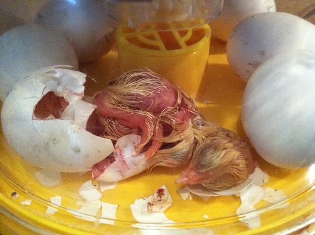 Sembra stia bene, è vivace, pigola di continuo e cerca sempre di alzarsi ma dopo un pò cade