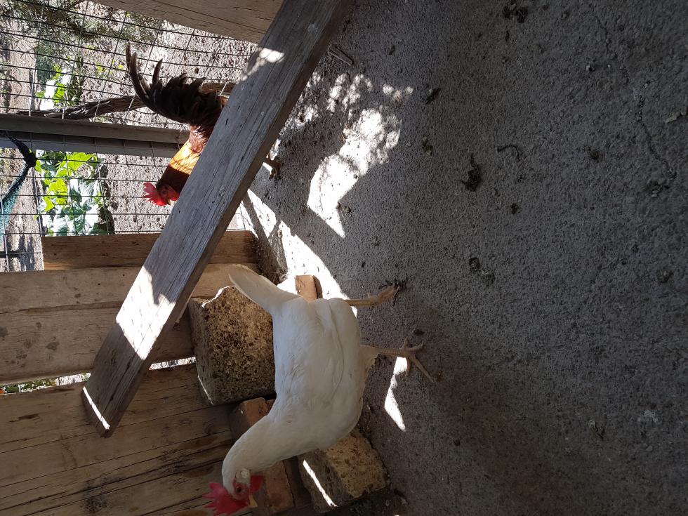 Piccolo aggiornamento: la gallina per fortuna si è ripresa e per il momento sta con il galletto nano perché le altre livornesi le hanno fatto la festa quando l'ho rimessa nel pollaio e sono stato costretto a toglierla. Seguendo i consigli di Max ho cercato di ombreggiare il pollaio.