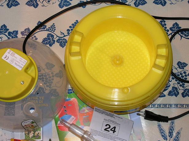Ciao Passio! Finalmente è arrivata! E' proprio uguale alla mia! Per la lampadina non ti preoccupare, è normale che faccia un po' di vibrazioni come dici te, non è una classica lampadina da lampadario! Poi come ti dicevano gli altri, quando avrà raggiunto la temperatura inizierà a funzionare ad intermittenza, magari starà accesa 2 minuti e spenta 30 secondi ecc... (questo è solo un esempio a caso). Per regolarti sulla temperatura, visto che non ci sono riportate le cifre (100, 101 ecc) io la tenevo oltre la tacca più lunga (che dovrebbe indicare i 100°) di un paio di tacche scarse (1 tacca e mezzo in più circa). Se posso darti un altro consiglio, accendila molto prima di mettere le uova dentro! Io l'avevo accesa una settimana prima (già con le vaschette piene d'acqua). Perchè ci vuole un po' prima che si regolarizzi, infatti i primi giorni c'erano diversi sbalzi di temperatura e dovevo intervenire spesso su quella vitina per regolarla. Forse una settimana è anche esagerato, ma almeno 3/4 giorni prima dovresti accenderla. Per il riposo delle uova, se sono fresche potresti anche aspettare un giorno prima di incubarle, a me le hanno spedite via corriere da Trento (e io sto in Toscana) e il venditore mi aveva consigliato di farle riposare almeno un giorno e così ho fatto! Ora non mi viene in mente altro, però se hai delle domande chiedi pure. E pensare che la mia Moroseta ha iniziato a covare da qualche giorno, ha un solo uovo e neppure fecondato visto che il gallo non ce l'ho... poverina. Mi dispiace vederla lì così impegnata per nulla.... però mi dispiace anche levarle l'uovo o inzupparla in un secchio d'acqua come mi dicono le vecchie signore del mio paese!! Bè a presto, facci sapere!