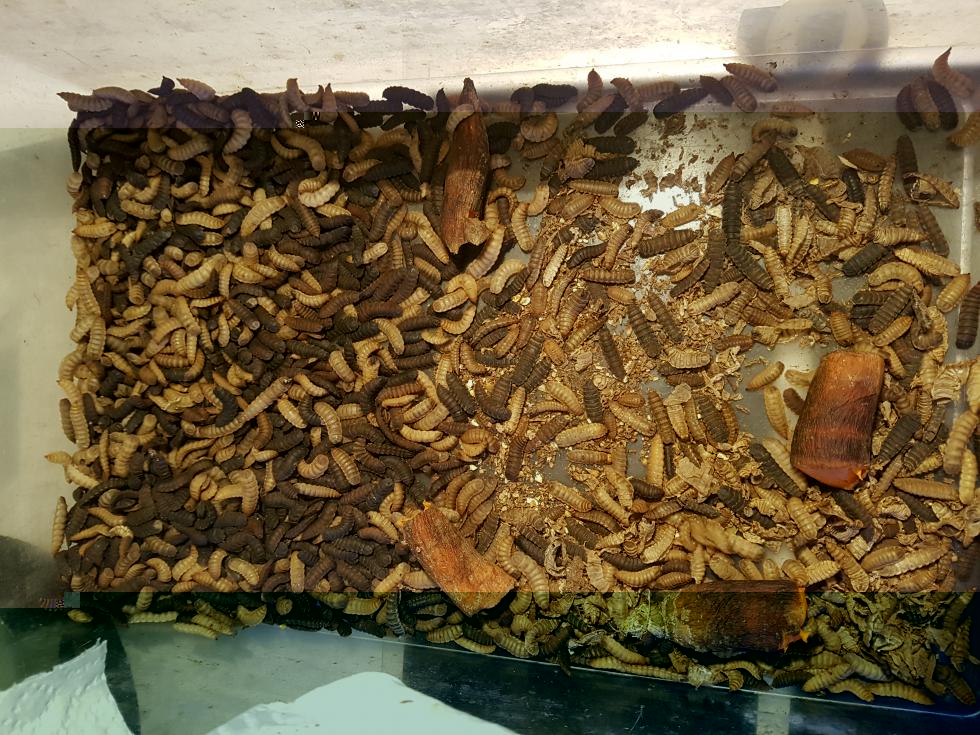 Ciao stevemagno,le mie stanno andando alla grande, da una vasca ora ne ho 3 di vasche e stanno sempre deponendo,si pappano 15kg di umido ogni 3 4 giorni... Nella foto che hai messo vedo chiaramente larve allo stadio finale e larve ancora bianche.Le larve all'ultimo stadio le dovresti togliere tutte da li e metterle in una vasca con trucciolato o torba o comunque un substrato asciutto senza cibo, tempo due settimane e si strasformeranno in mosche. Devi aumentargli il cibo io li vedo solo carote,devi andare in un negozio e farti lasciare tutta la frutta guasta,loro amano la frutta guasta. Devi dare acqua alle mosche.Se non depongono e perchè o c'è molto freddo o perchè c'è poca luce o perchè il cibo nn le attira,quindi: Mettere tanta frutta guasta,mele,pere etc etc temperatura 20-25 ma anche 30-40,le mie ultimamente sono con temperatura a 40 e stanno impazzendo,si accoppiano in aria, in mezzo all'umidio, praticamente ovunque.Quindi,temperatura alta e luce del sole.Ti basta una piccolissima serra ben chiusa,ricordati che la serra può portare anche di 20-30 gradi in più rispetto alla temperatura esterna,se non puoi costruire una mini serra, mettile in un punto soleggiato oppure usa luce artificiale ma ancora io non ho fatto i test con la luce artificiale quindi non so come aiutarti per questo.