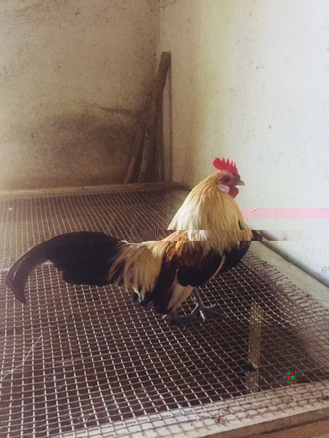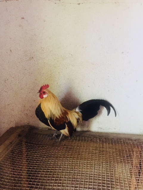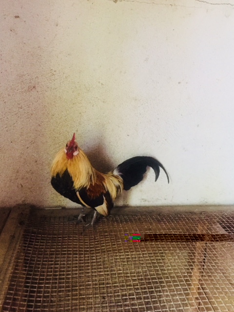 Vorrei mostrare le foto di questo nanetto minuscolo, personalmente lo trovo molto carino, a parte la cresta, ha un colore molto vivace ed ha un piumaggio molto bello, sembra quello di un fagiano, anche se le foto non rendono. Vi ricorda qualche razza? Credo sia un ibrido particolarmente piccolo! Ha delle zampette cortissime.