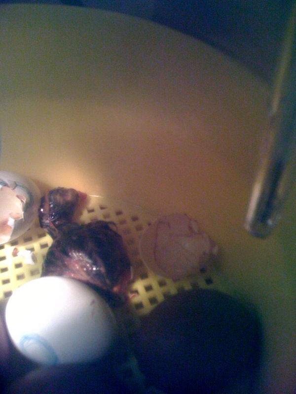 ecco il secondo genito....diciamo primo un marans secondo un livornese....beh se pensiamo che le uova di livornese erano tre e solo una e' schiusa....e che le marans erano dieci con lo stesso risultato...allora vince la livorno di una buona lunghezza....ora fino a domenica aspetto ancora ma tanto non credo si potra vedere altro....