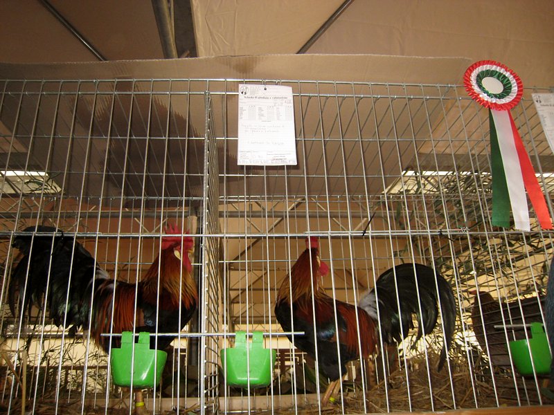 nell'ordine: Barbuta d'Anversa bianca CAMPIONE DI RAZZA; Combattente Inglese Nano dorata frumento CAMPIONE DI RAZZA; Italiana Perniciata; Livorno nera. Allegato: