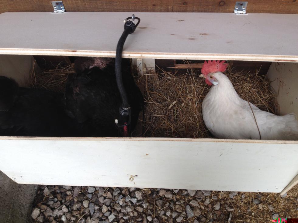 Ho cambiato la disposizione dei nidi, da semplici cassette o secchi con paglia, a un nido comune da 80 x 40cm diviso in due, l'ho ultimato ieri e stamattina non ci erano ancora entrate.