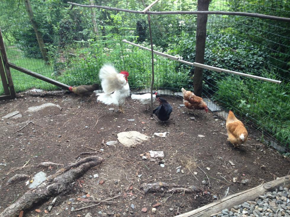 Ora ho un gallo Livorno bianco di 16 mesi che canta tantissimo, 2 Livorno bianche, 1 collo oro, 4 Harco, 1 ISA e 2 Australorp.