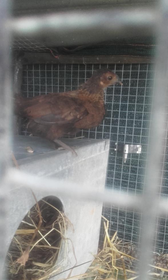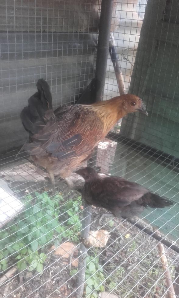 Buonasera! oggi ho preso questi due galletti! quella grande è femmina (4 mesi) e il pulcino è maschio!
