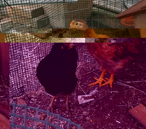 Ecco qui le mie due nuove arrivate, la nera ha le zampe troppo sicure per essere una Livorno pura, e la rossa spero tanto sia una femmina con quella cresta, però per 10 euro più 6 kg di cibo, non mi lamento... Opinioni in merito?